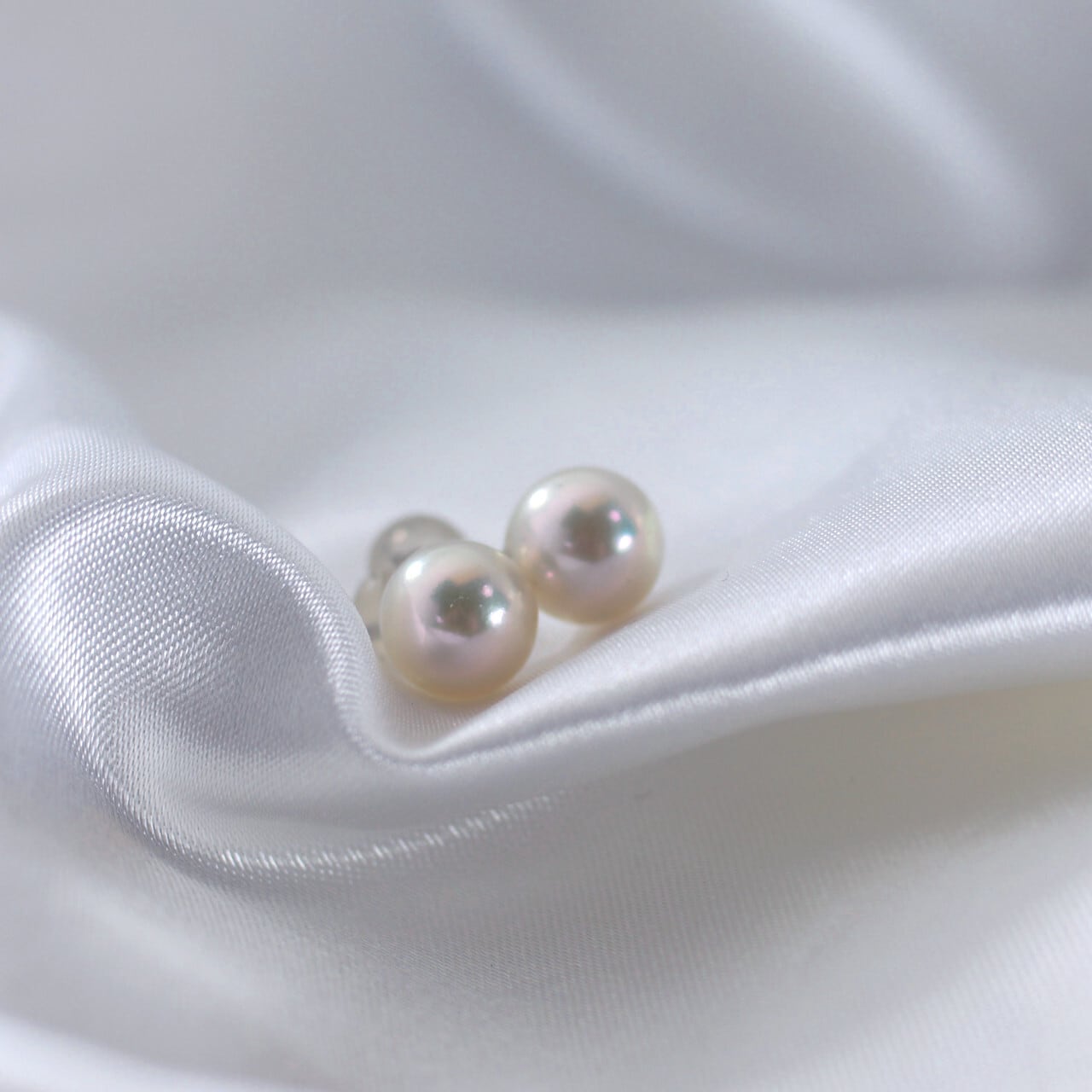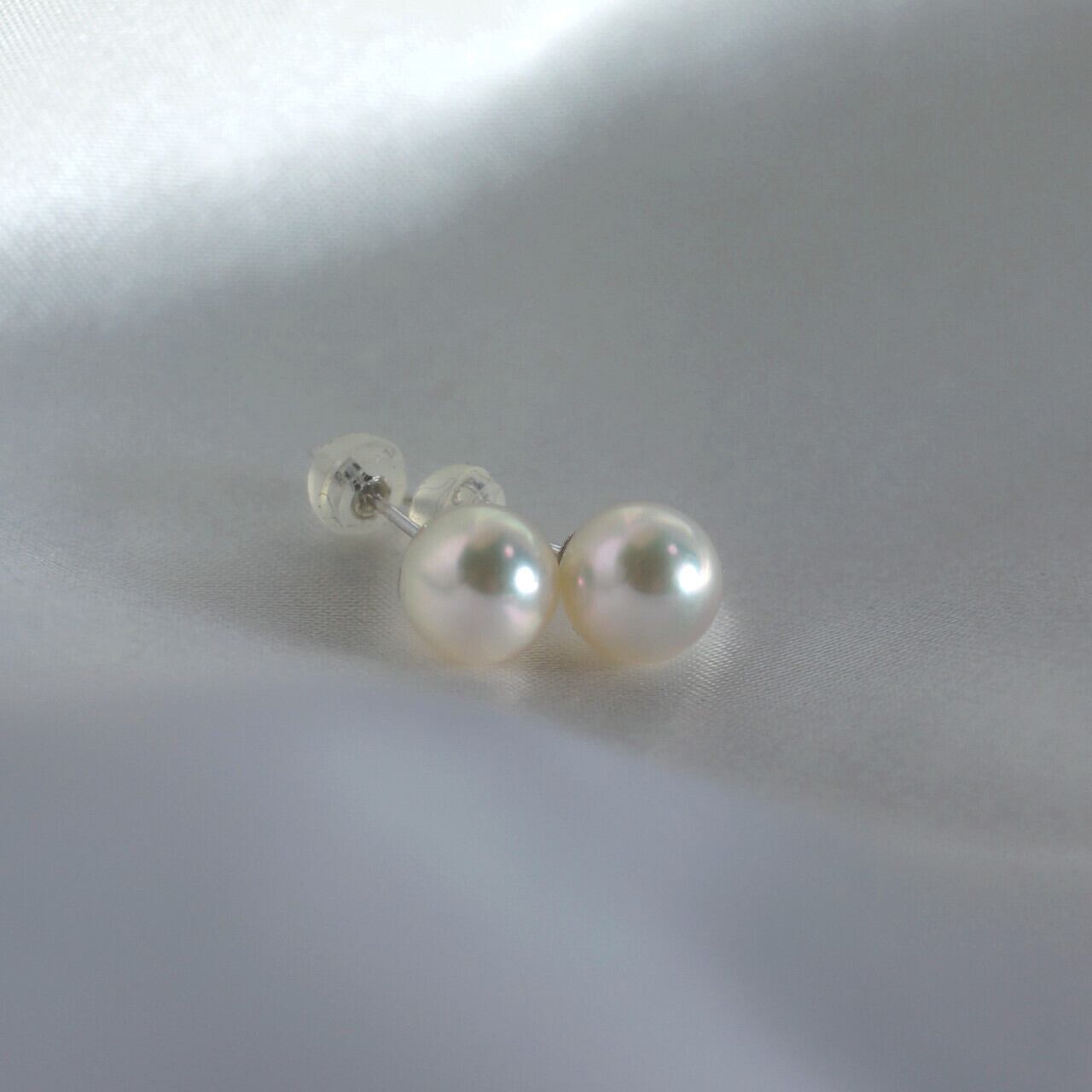 ホワイト系天然色のアコヤ真珠を使用したシンプルなスタッドピアスです。