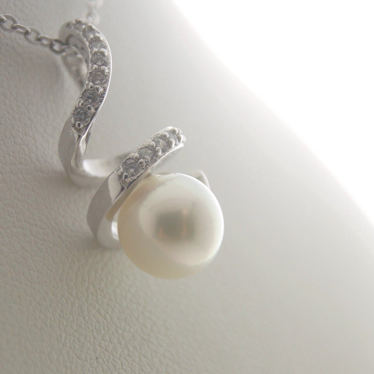 8.5-9.0mm アコヤ真珠 デザイン ペンダントネックレス スパイラル s925 ロジウムコーティング